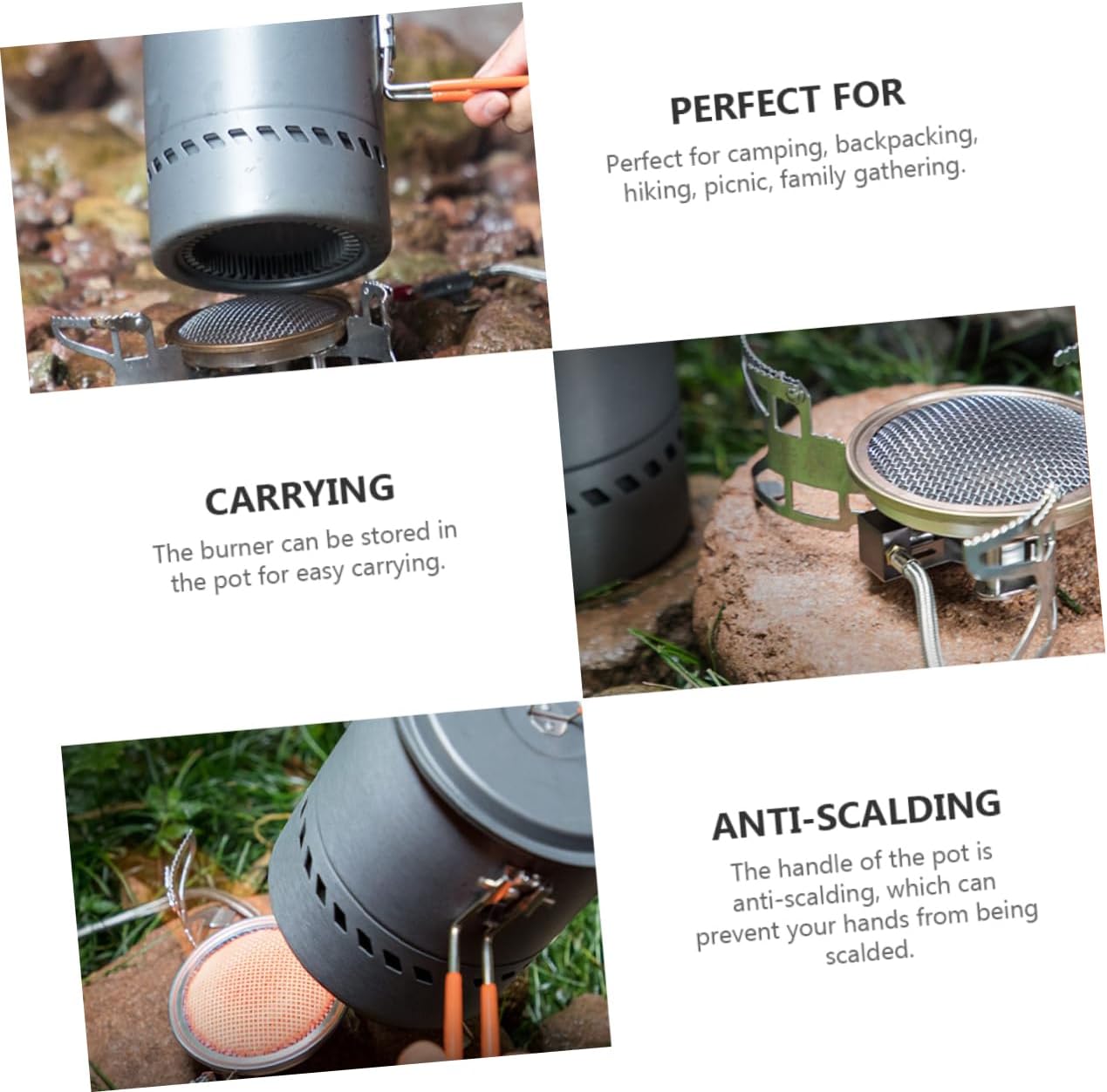 Package Include 1 x stove 1 x pot Features - Rated Power: 3800W Backpacking Cook Tool. - Size: Approx. 14.60X13.20X13.20cm/5.74X5.19X5.19in Outdoor Cookware. - Color: Assorted Color Camping Cookware. - : /Propane (not included) Kit. - Material: Aluminum alloy (pot); stainless steel (stove) Camping Cooker. - A present for your family and friends who like outdoor camping and cooking, and they will like it Cooking Equipment. - The handle of the pot is anti-scalding, which prevent your hands from being scalded Picnic Cook Tool. - for camping, backpacking, hiking, picnic, family gathering, and outdoor activities. Camping Cookware - The burner be stored in the pot for easy carrying Outdoor Picnic Cookware. - Made of aluminum alloy and stainless steel material, and for long-lasting use Kitchen Gadget.Goods InformationCamping Cooker Choose one for you.Outdoor Cookware It contains 1 camping stove and 1 pot.Outdoor Picnic Cookware This product is a set of camping cookware, made of aluminum alloy and stainless steel material, and .Kitchen Gadget It is for camping, hiking, picnic and other outdoor activities