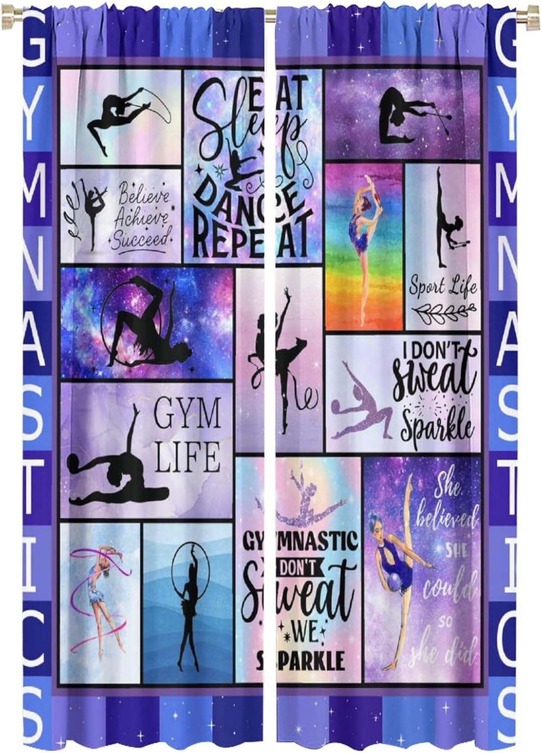 Welcome to our store. Total size: 45" L × 42" W (114cm × 107cm),Includes two pieces,each of which measures:45" length × 21" width (114cm × 53.5cm). Total size: 54" L × 42" W (137cm × 107cm),Includes two pieces,each of which measures:54" length × 21" width (68.5cm × 53.5cm). Total size: 63" L × 42" W (160cm × 107cm),Includes two pieces,each of which measures:63" length × 21" width (160cm × 53.5cm). Total size: 63" L × 55" W (160cm × 140cm),Includes two pieces,each of which measures:63" length × 27.5" width (160cm × 70cm). Total size: 63" L × 63" W (160cm × 160cm),Includes two pieces,each of which measures:63" length × 31.5" width (160cm × 80cm). Total size: 72" L × 63" W (183cm × 160cm),Includes two pieces,each of which measures:72" length × 31.5" width (183cm × 80cm). Total size: 63" L × 72" W (160cm × 183cm),Includes two pieces,each of which measures:63" length × 36" width (160cm × 91.5cm). Total size: 84" L × 84" W (214cm × 214cm),Includes two pieces,each of which measures:84" length × 42" width (214cm × 107cm). People always prefer using some decor to highlight the visual aesthetic. The brebasf Modern Girl Gymnastics Athlete curtains is the beautiful choice for bedroom.Good and Healthy materialOur Rustic Diamond Glitter Sequin Butterfly Dance Silhouette curtain is made from a safe and durable polyester fabric,a healthy choice for any living room.★ 95% polyester fabric.★ Easy to install. Easy to hang.★ Various style theme design,so that the bathroom is full of color and fun.Note1. Please allow a little bit of size deviation due to manual measurement.2. Due to differences in computer monitors,please allow a little bit of color difference between the picture and the object.