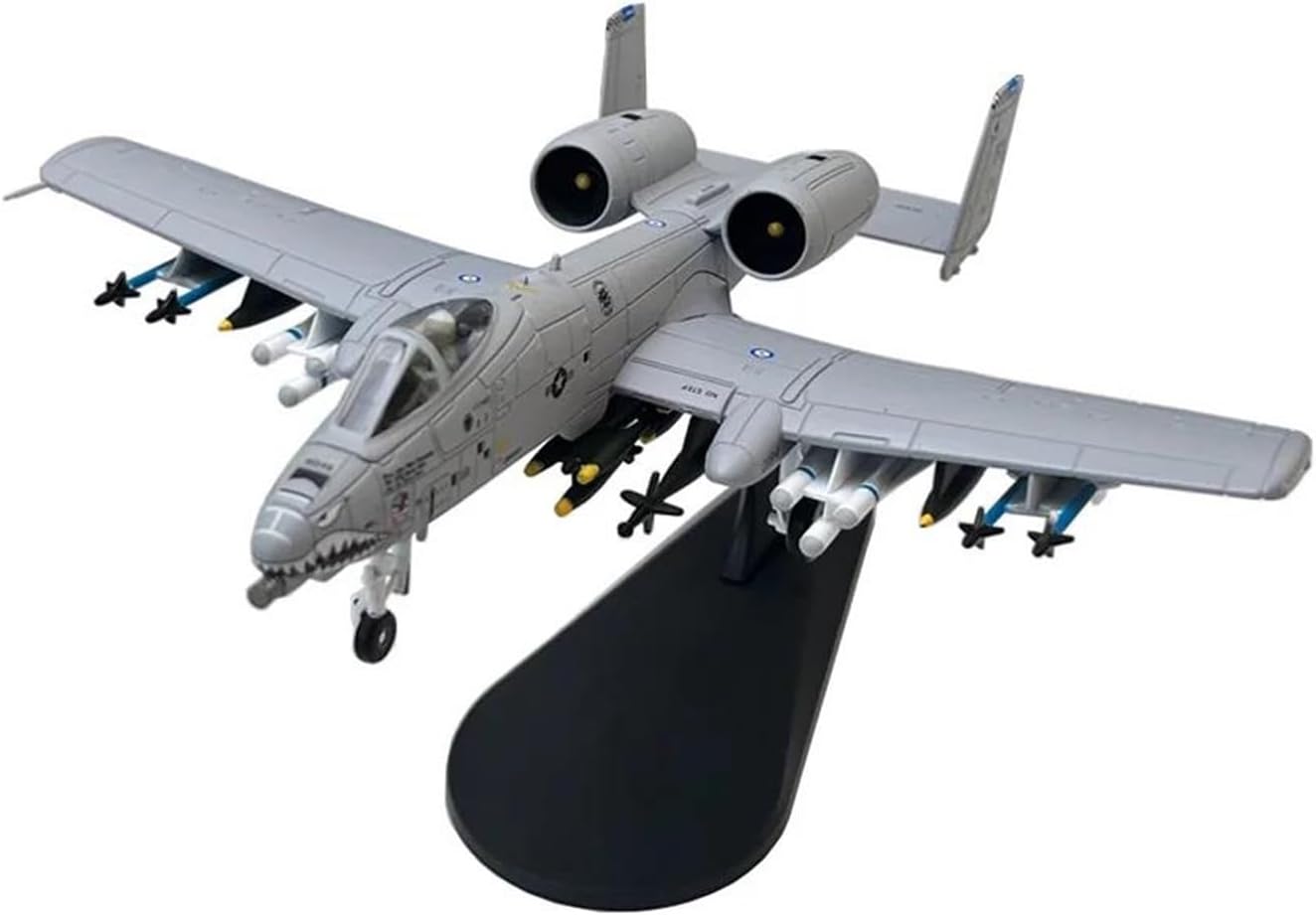 This die-cast metal airplane model toy is cast as a whole, with its authentic design and sensory features, it is not only a collector's item, but also a perfect gift for aviation enthusiasts. It allows you to share and recall the story and history of this aircraft with your friends and family, allowing your friends to appreciate this charm and story.This is a 1/100 Scale A-10A Warthog Attack Airplane Model.A-10A Warthog MC / A-10C Shark HH / A-10C Warthog HH :The airplane‘s landing gear can be removed.A-10A Shark DS / A-10A Shark SS / A-10C Shark GD : The airplane‘s landing gear can't be removed .The other parts can't be removed and the cockpit cover can't be opened.Size: It's 1:100 Scale. The weight about 150g. The length is 6.49inch/16.5cm, The Width is 6.69inch/17cm. The height is:1.97inch/5cmMaterial:The belly and wings of the airplane are made of alloy and the rest of the airpalne is made of ABSPackage:Contains a whole airplane and a display stand.This model is highly restored with details of the real aircraft, suitable as an ornament and collector's item, we do not recommend giving it to children under 14 years old to play with as a toy.