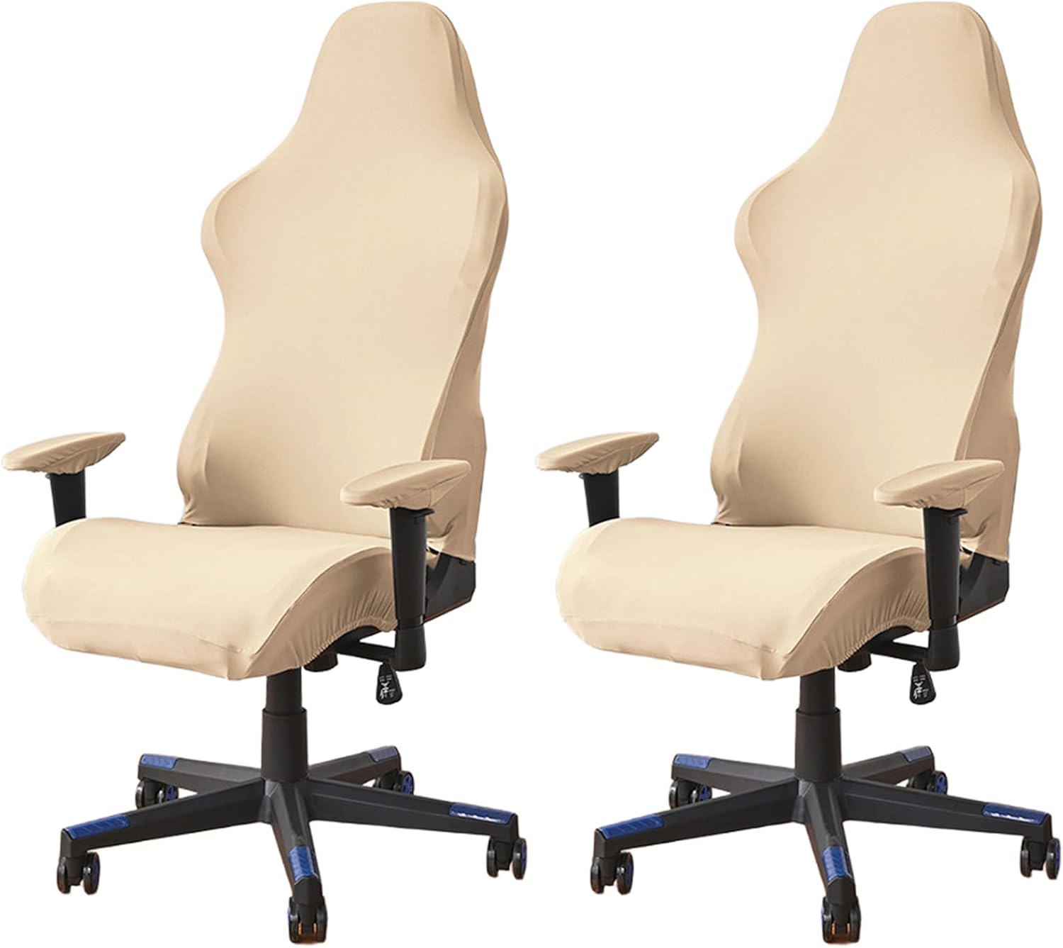Gaming Chair Cover with ArmrestGaming chair seat cover the back of the chair is designed with a securing buckle design for easy fixing and use, widened and highly elastic band, can fit naturally to the edges, support the bottom and fit corners 360,The seat cover and arm gloves are elastic, so You can install them gently on chairs to give your old chairs a new look.Specifications:Product name: Gaming Computer Office Chair CoverStyle: Modern and MinimalistMaterial: 92% Polyester + 8% SpandexColors: White, Gray, Red, Khaki, Green, Blue, Dark Brown, Coffee, Dark Gray, Light Gray, BlackDimensions: (See dimensional chart)Function: Wear-resistant, soft and comfortable, decorativeSingle weight: about 225gSuitable for: all seasonsPackage Included:Chair Cover 1 Set (Back Cover 1 pc + Seat Cover 1 pc, Armrest Cover 2pcs).Chair Cover 2 Set (Back Cover 2 pcs + Seat Cover 2 pcs, Armrest Cover 4pcs).(Excluding chair and any other items)Please Attention:-- Please carefully read the Size we provided in the pictures, and measure your chair size to determine if it will work.-- Due to different light and screen, the color of the item may be slightly different from the image.-- Due to manual measurement, please leave a distance of 1-2 cm. Please understand us, thank you very much.