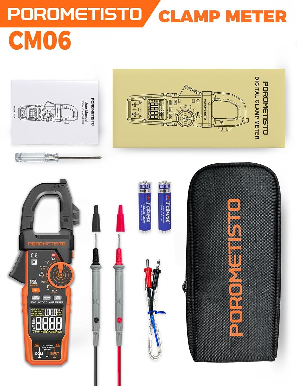| Included Components | Clamp Meter,Test Leads (Pair), K-Type Thermocouple, batteries, user manual, case |