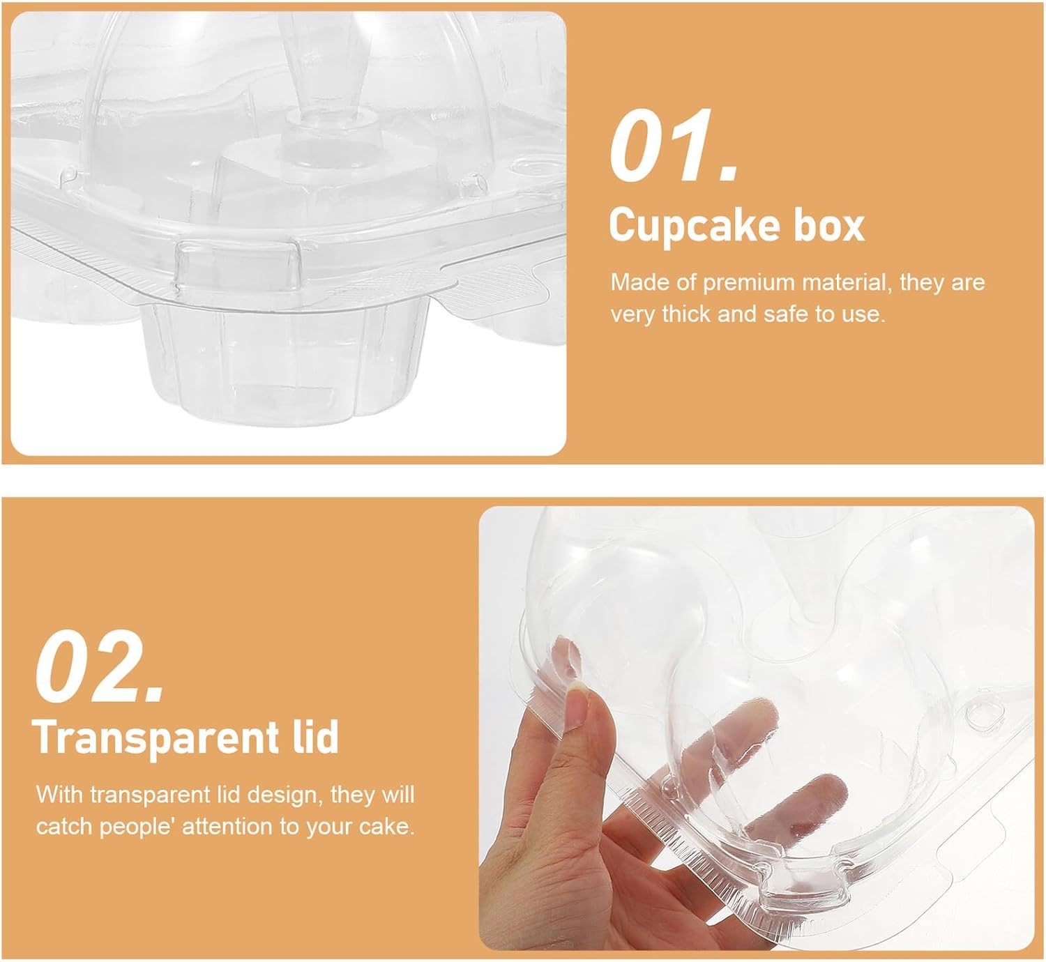Package Include 15 x Cupcake Holders Features -Material:PET -Color:Transparent -Product Info:Cake tray set -Size:35.00X25.00X10.00cm/13.76X9.82X3.93in -Made of , this packaging box is practical and to use. The box comes with the compact size, which provides convenience to carry. -Perfect packing boxes for toast, bread, cake, candies, chocolates, jelly, biscuits and more mini cupcake holders. -Light weight and small size, they are easy to use and carry to any places you want. -With the cartoon and decorative design, they can be easily assembled or disassembled convenient cupcake holders. -Perfect for Christmas, birthdays, Valentine's Day and other holidays, very practical visible cupcake containers.Goods Informationplastic cake carrier Easy to take with the handle design.cupcake storage containers Do you wanna have a packaging box for the dessert you prepare? Then you can not miss our product.cupcake carriers It is a toast packaging box made of , practical and to use.cupcake holders Applicable to cookie, candy, cake and other desserts wrapping use.cupcake individual container With a cartoon appearance, it can make your dessert more beautiful and delicate