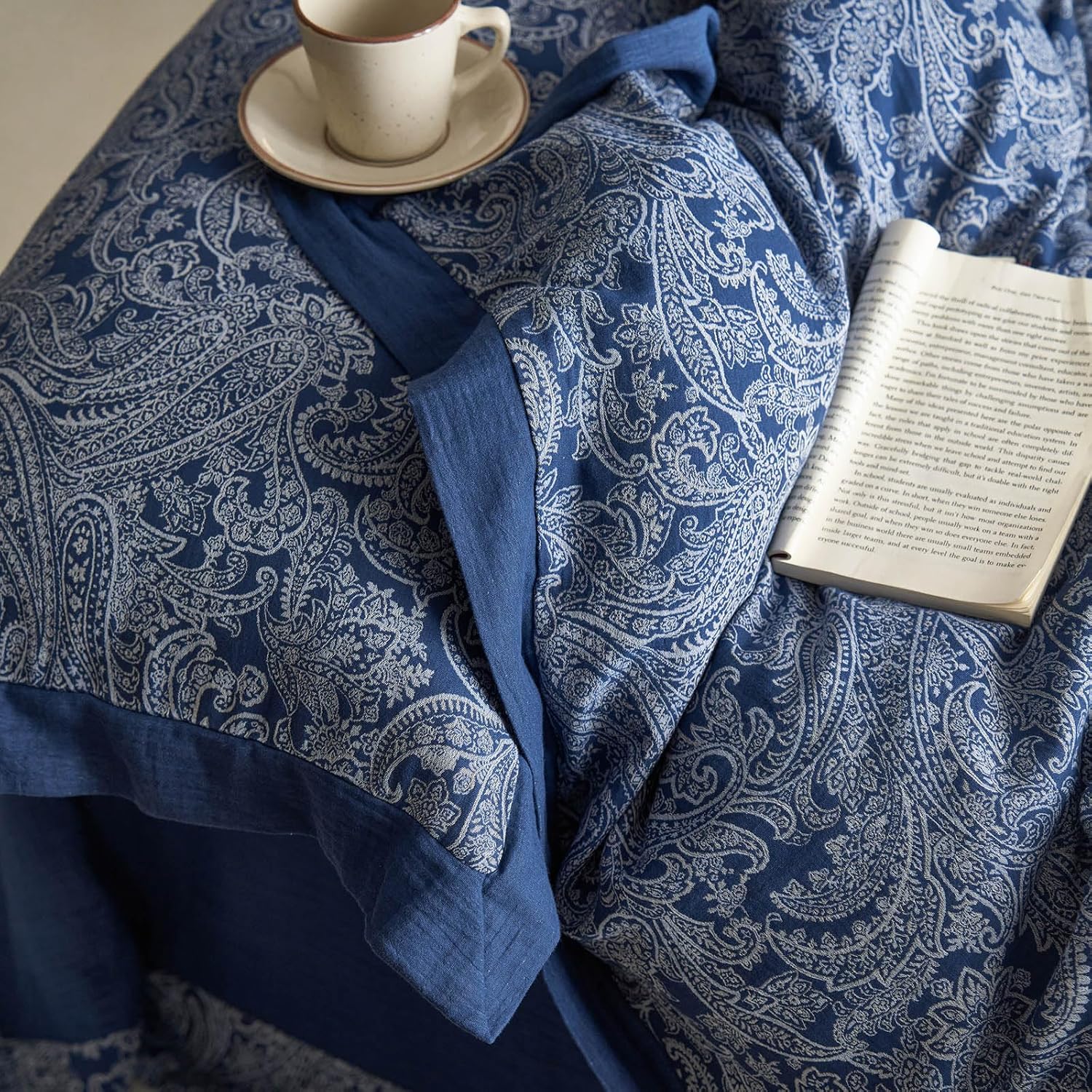 LifeTB Vintage Style Boho Paisley Duvet Cover Set Cozy Soft Premium Yarn-Dyed Jacquard Linen Cotton Duvet Cover Retro Flower Farmhouse Bedding Set Breathable Comfy Linen Cotton Textured Duvet Cover Chic Shabby Floral Comforter Cover Boho Cottagecore Bedding Set Bohemian Flower Bedding Comforter Cover for Girls Women Teen 1 Aesthetic Floral Duvet Cover with 2 Pillowcases. Lightweight soft 100% yarn-dyed cotton jacquard fabric features natural wrinkles look on surface, duvet cover and pillowcases with exquisite edge design, adds chic vintage feeling for home your decor. Natural cotton is incredibly soft, breathable, durable, fade-resistant, skin-friendly and fast sweat absorption, providing high quality comfy sleep, gives you ultimate coziness and comfort. Available in various colors to match your bedding collections, adds classic and rustic look to your rooms. Modern style cotton jacquard linen duvet cover set is perfect for all seasons use. Great gift idea for your family and friends on any occasions or holidays.