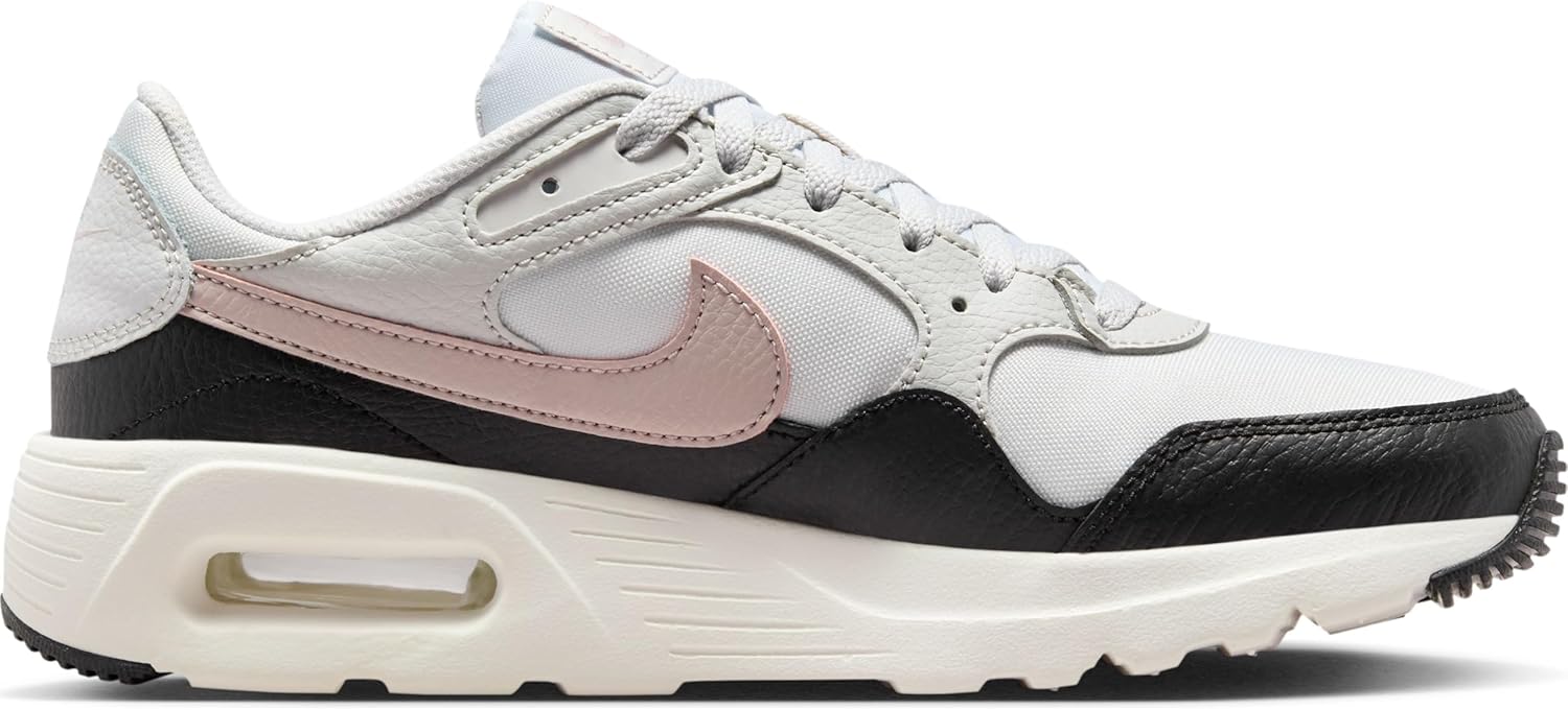 The Nike Air Max SC, with its relaxed design and vintage track aesthetic, boasts visible Air cushioning, making it an ideal final touch to any ensemble. Its blend of materials lends depth while ensuring durability and lightness for daily wear. Available in Platinum Tint/Black/Sail/Platinum Violet, this shoe runs small, so consider ordering a half size up. Style: CW4554-006.