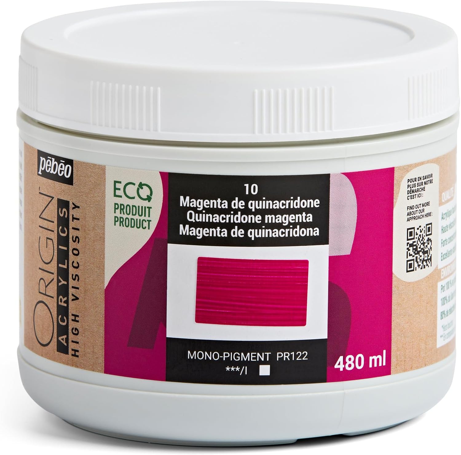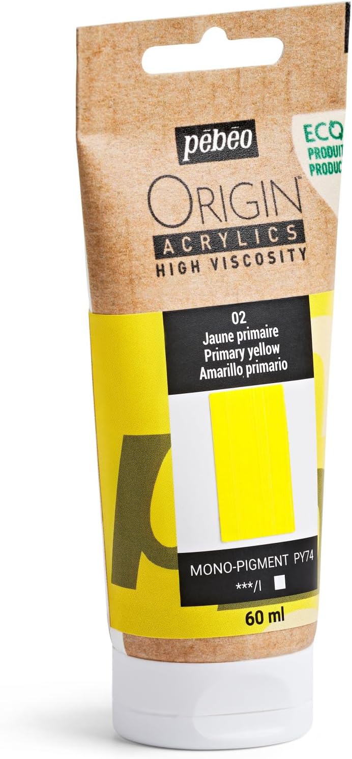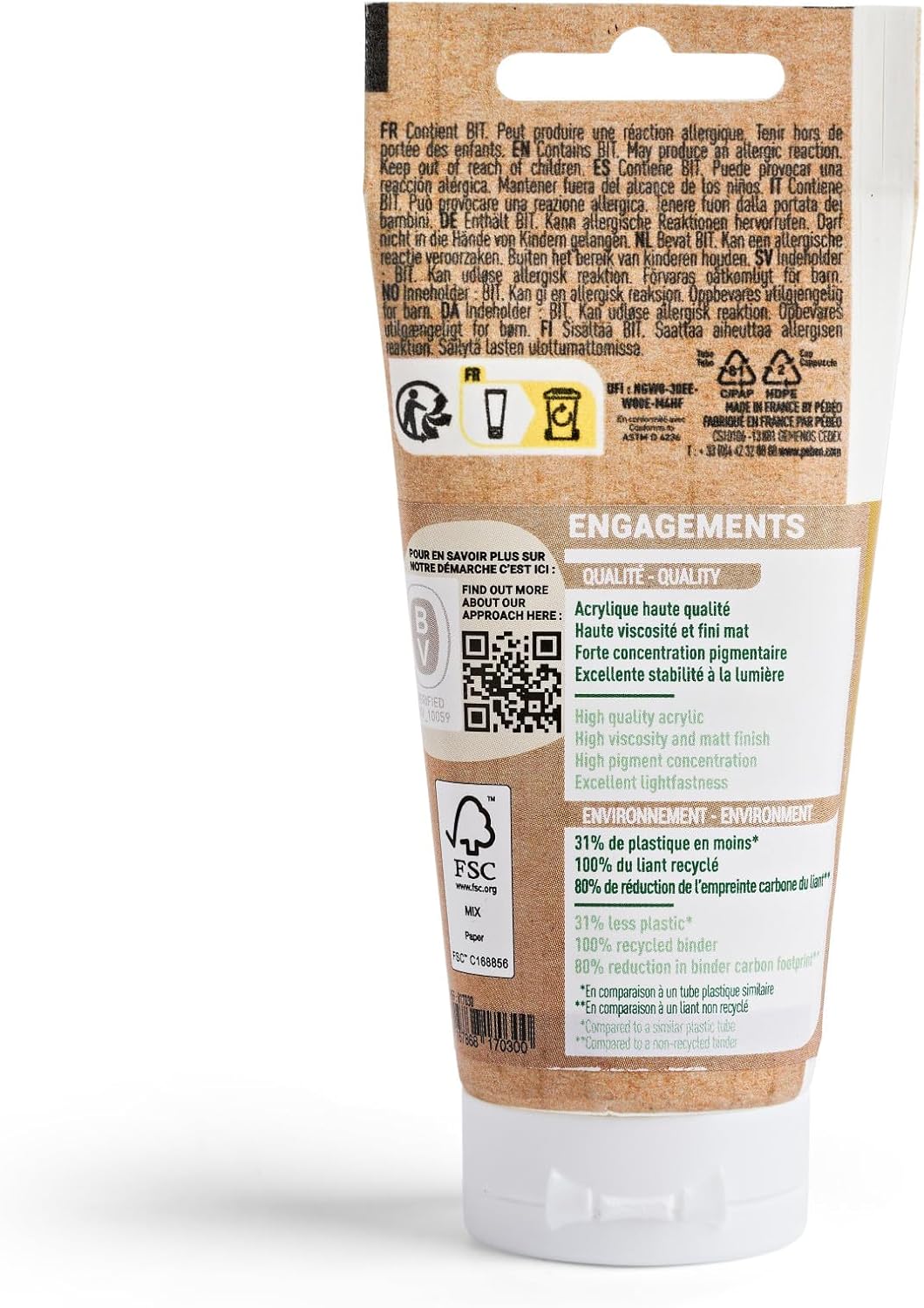 Origin Acrylics 480ml - High Quality Eco-Designed Paint by Pébéo Description: Discover the excellence of Origin Acrylics 480ml by Pébéo, a revolutionary and eco-responsible acrylic paint designed for environmentally conscious artists without compromising quality. Formulated with a 100% recycled binder, this innovative paint reduces your carbon footprint by 80% compared to non-recycled binders. Made in France, Origin Acrylics incorporates 96% raw materials of European origin, guaranteeing durability and high quality. Key Features: Eco-responsible formulation: Designed with a 100% recycled binder, significantly reducing the environmental impact. High quality finish: Provides a rich, dense and nervous texture with a matte finish, perfect for preserving the marks of brushes and knives. VERSATILE APPLICATION: Ideal for thick applications and impastos, while providing a fluid brush application. Intense pigmentation: High pigment concentration for vibrant, long-lasting colours with excellent light stability. Mono-Pigment Purity: Ensures bright, deep hues that retain their radiance and purity in blends. Sustainable packaging: Packaged in a 100% recycled jar (excluding cork) and recyclable.