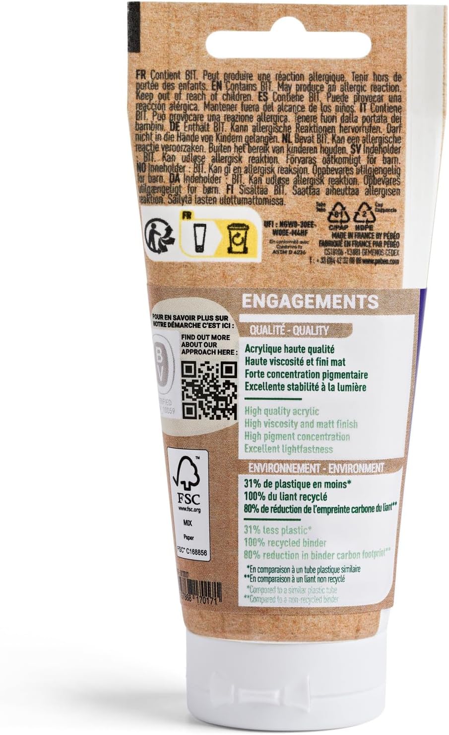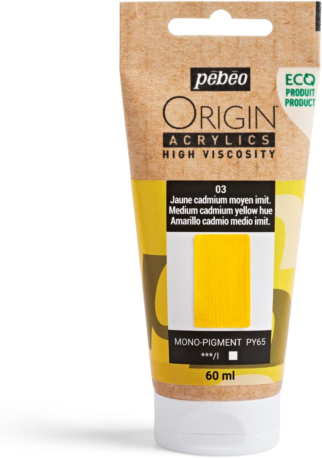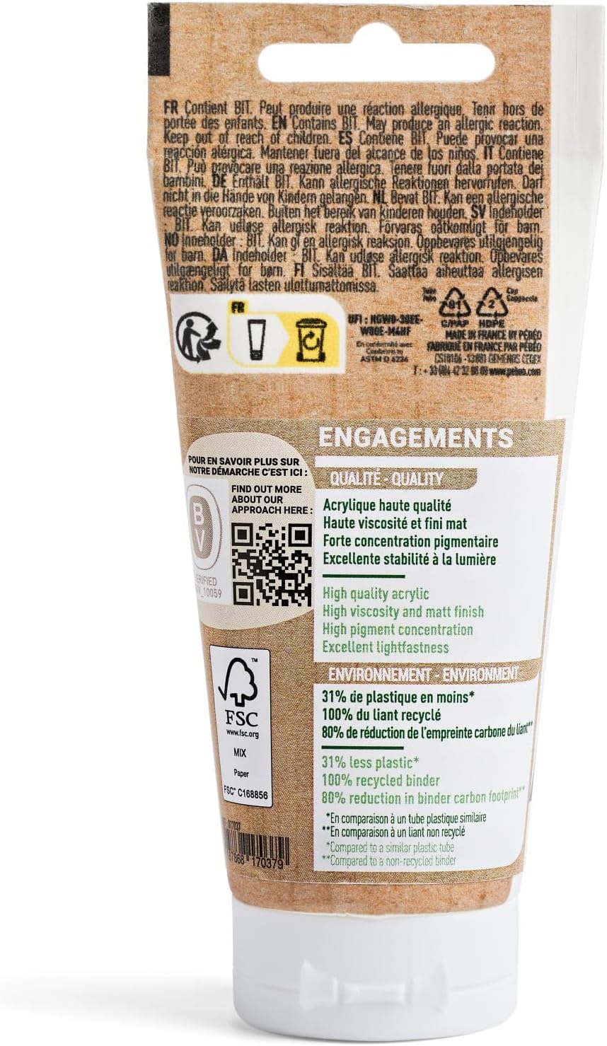 Origin Acrylics 480ml - High Quality Eco-Designed Paint by Pébéo Description: Discover the excellence of Origin Acrylics 480ml by Pébéo, a revolutionary and eco-responsible acrylic paint designed for environmentally conscious artists without compromising quality. Formulated with a 100% recycled binder, this innovative paint reduces your carbon footprint by 80% compared to non-recycled binders. Made in France, Origin Acrylics incorporates 96% raw materials of European origin, guaranteeing durability and high quality. Key Features: Eco-responsible formulation: Designed with a 100% recycled binder, significantly reducing the environmental impact. High quality finish: Provides a rich, dense and nervous texture with a matte finish, perfect for preserving the marks of brushes and knives. VERSATILE APPLICATION: Ideal for thick applications and impastos, while providing a fluid brush application. Intense pigmentation: High pigment concentration for vibrant, long-lasting colours with excellent light stability. Mono-Pigment Purity: Ensures bright, deep hues that retain their radiance and purity in blends. Sustainable packaging: Packaged in a 100% recycled jar (excluding cork) and recyclable.