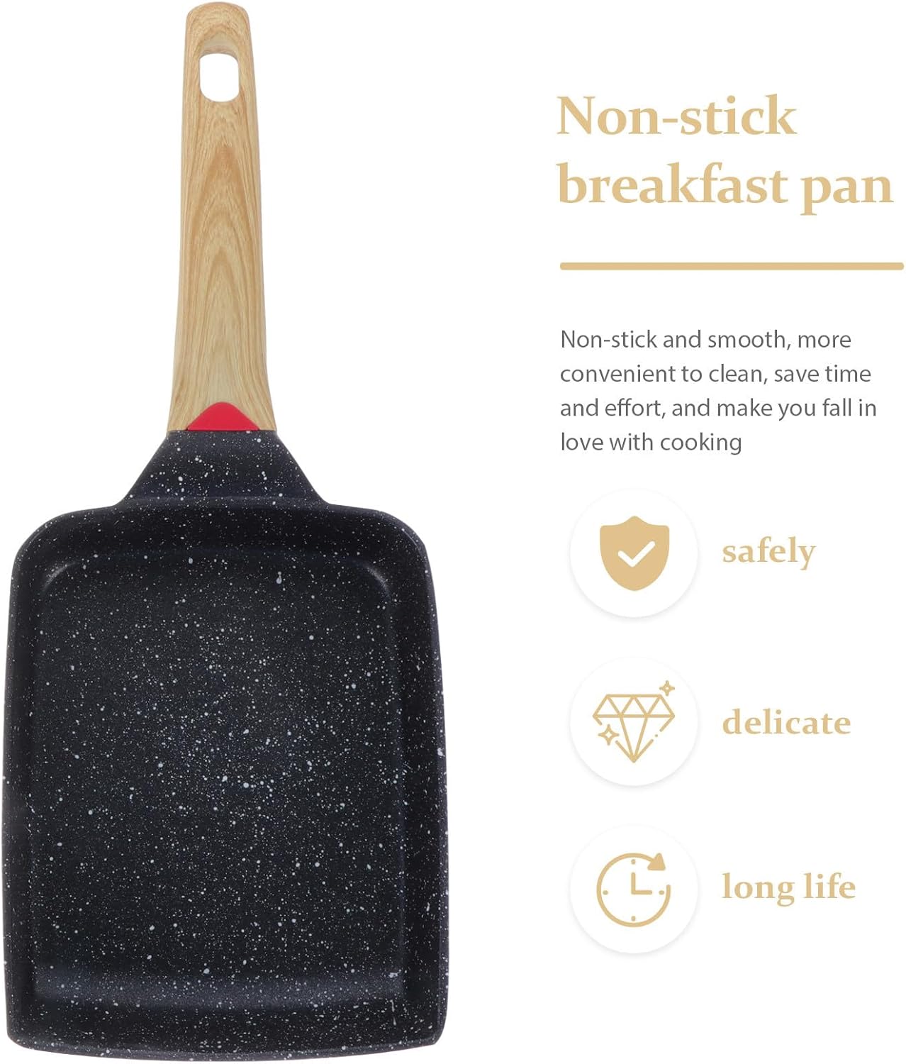 Package List 1 x Frying Pan Characteristics -Material: Aluminum Alloy & Wood -Size: Approx. 36.50X15.00X4.00cm / 14.34X5.89X1.57in -Product Info: Fried Egg Pot - The handle designed with ergonomics concepts are convenient for US to grasp and use nonstick pans. - Non-stick and smooth, more convenient to clean, save time and effort, and make you fall in with cooking non stick egg pan. - A good kitchen helper for frying omelette, Tamagoyaki, burgers, , steaks, sausages, vegetable, meat, etc non stick pan for eggs. - Made of aluminium alloy and wood materials, construction for use. - The base remains completely flat, allowing maximum connection with the stove and keeping the heat even fried egg pan.Goods DescriptionSquare Shape Frying Pan Our frying pan makes it easy to cook food that the whole family will.square griddle pan Our non-stick frying pan to fit your everyday cooking needs and techniques.breakfast pan A good to your friends.fried pan Perfect for cooking omelets, bacon, burgers, steaks, pancakes and whatever else