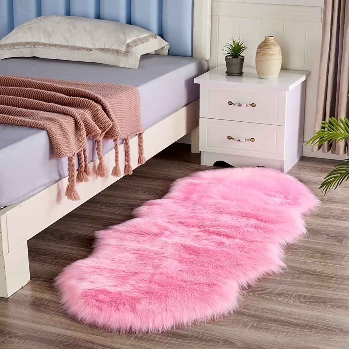 Ultra Soft Fluffy Shaggy Area Rug Faux Sheepskin Fur Rug 2x3 Feet Fuzzy Area Rug for Bedroom Floor Sofa Living Room: Size: 2 x 3 ft Sheepskin, 2 x 4 ft Sheepskin, 2 x 5 ft Sheepskin, 2 x 6 ft Sheepskin Color: White, Red, Grey, Gold, Burgundy, Coffee, Khaki, Yellow, Pink, Light Blue, Rose Pink Suitable For: Sitting Room, Bedroom, Sofa, Living Room Wedding Gift, Housewarming Gift, Cushion, Decorative Rug Yoga and Meditation Rug Use for Home: Living room, bedroom, toddler's room, etc Cover the bare floors, hardwoods, bedside, or fireplace Washing Instructions: 1. Machine wash Faux fur rug on gentle cycle with cold water (less than 30 degrees) 2. Add a small amount of mild or all-natural detergent 3. Shake it to fluff up the faux fur when take out the faux fur item Help remove any additional excess water 4. Lay rug out or hang to dry naturally without direct heat or sun. Choose a site that's well ventilated for air drying 5. Brush and fluff up the faux fur.using a care brush with widely spaced metal bristles. After finished, the wool may revert back to its natural curly state