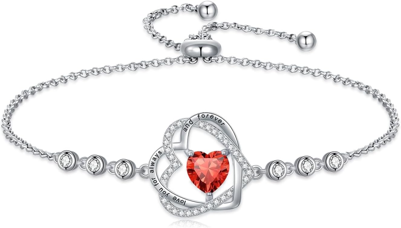 TOUPOP jewelry is a fashionable jewelry series that exudes feminine charmWe encourage women to strive to find beauty in lifeOur designers have absorbed the most fashionable elements from Europe and the United StatesWe humbly accept every consumer's suggestions and continue to improveDouble Heart Birthstone Bracelet for Women-Material: 925 sterling silver hypoallergenic -Size: 0.7*0.7 inches-Chain: 9 inches adjustable chain-Contents: Heart birthday jewelry-Package: This love heart chain link bracelet comes in a beautiful gift box-Perfect for all occasions: Whether you are treating yourself or surprising a loved one, this jewelry is sure to be a meaningful and treasured gift. Can be used as a birthday, anniversary, Valentine's Day, Mother's Day, Christmas jewelry giftPackage Included:1 x Birthstone Heart bracelet1 x Exquisite gifts box1 x Polishing clothWe value your feedback and work hard to ensure you are satisfied with every purchase. Thank you for choosing us for all your jewelry needs. If you have any questions or concerns, please feel free to contact us and we will answer them as soon as possible